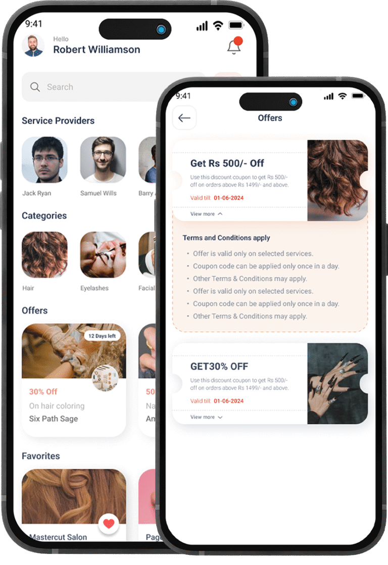 Manage appointments, payments, staff, and promotional offers—all on the go.